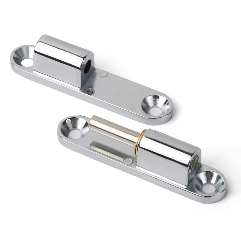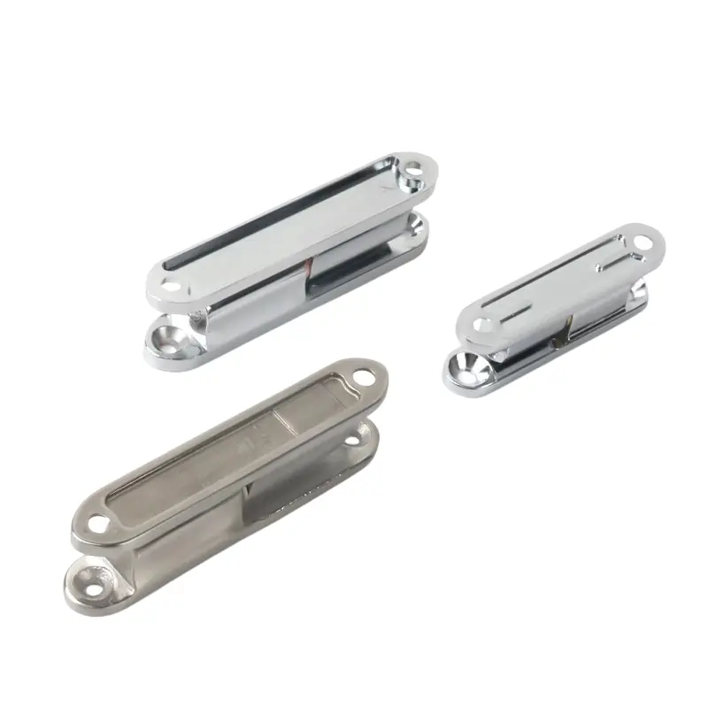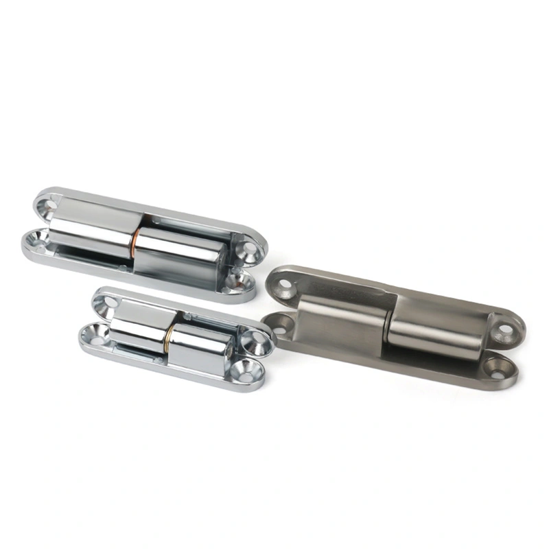 Cette série de charnières est disponible en deux matériaux: la version en alliage de zinc est traitée avec un placage chromé brillant pour un effet miroir. La version en acier inoxydable maintient la couleur d'origine du métal avec une finition brossée.