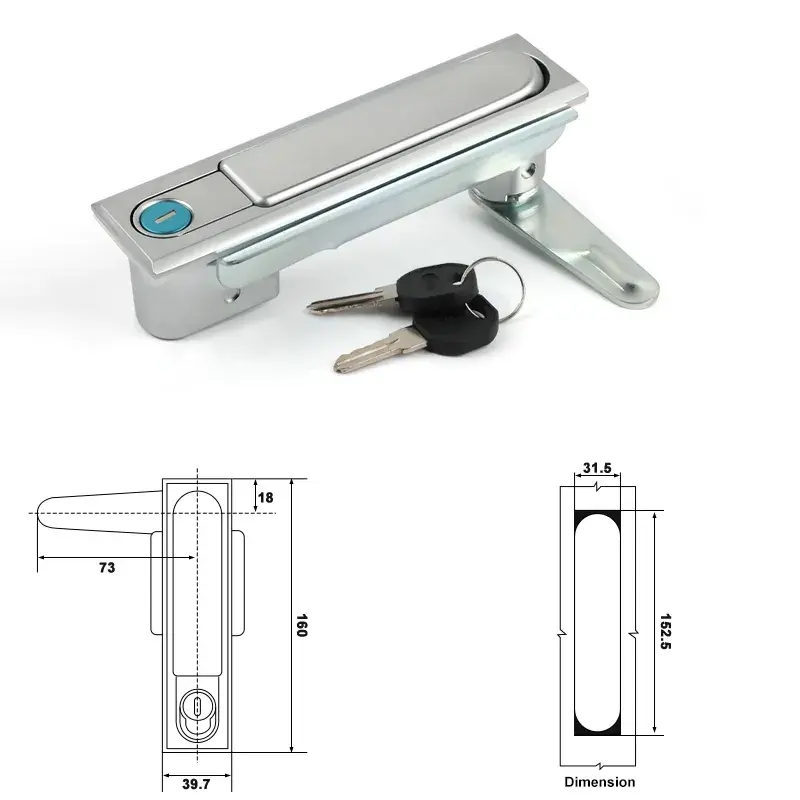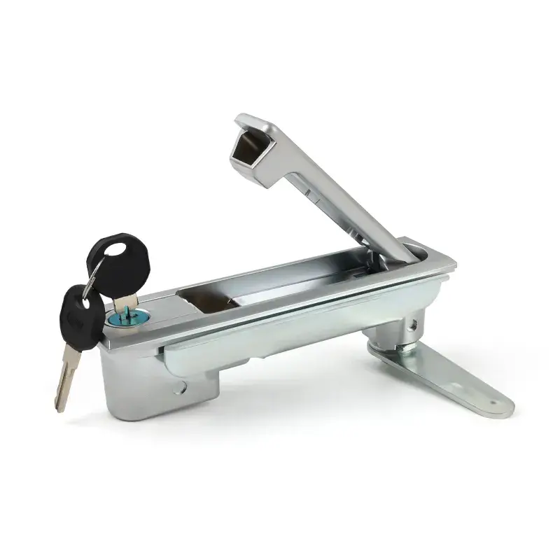 La fonction du verrou plat pour porte d'armoire est de permettre une ouverture et une fermeture rapides et sécurisées de la porte de l'armoire. La serrure est équipée d'un interrupteur à bouton facile à utiliser et adapté aux environnements industriels où des gants doivent être portés. Le ressort interne permet à la languette de verrouillage de se réinitialiser automatiquement, de sorte qu'aucune opération supplémentaire n'est requise lors de la fermeture de la porte de l'armoire.