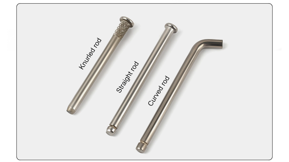 La charnière pivotante pour tableau de distribution est disponible avec une tige droite, une tige courbée et une tige moletée.